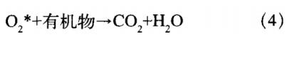 式(4)表明,處于激發態的氧氣分子與有機物發生反應,生成CO2和水蒸氣,對有機物溶劑沾污比較有效,具有清洗效率高、可選擇性好等優點。