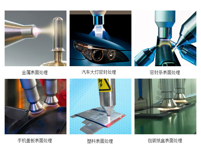 涂覆鍍膜領域中對玻璃、塑料、陶瓷、高聚合物等材料表面的改性,使其活化,增強表面粘附性、浸潤性、相容性,顯著提高涂覆鍍膜質量。